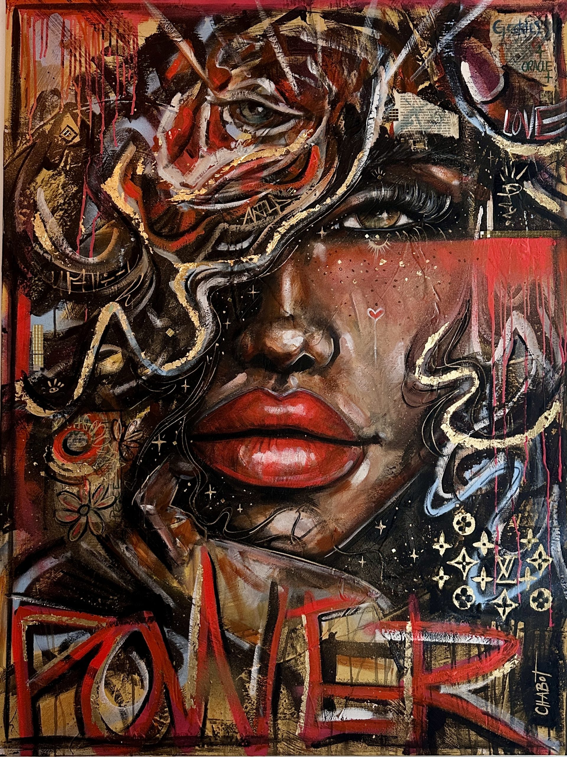 Détails : 36″x 48” peinture à l’acrylique et feuille d’or sur toile de qualité supérieure.
